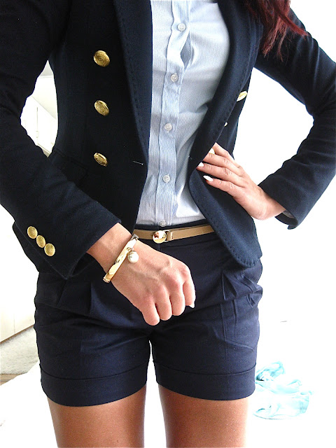 H&M tummansininen sailor bleiseri osoittautui varsin loistavaksi ostokseksi. Viihdyn siinä nykyään melkein päivittäin ja kultaiset yksityiskohdat antavat siihen viimeisen silauksen, kirsikan kakun päälle. Eilisen nudeverhoilun jälkeen loikahdin kuitenkin tummaan.. Onkohan mieli virittynyt kuitenkin jo uhkaavasti syksyyn?